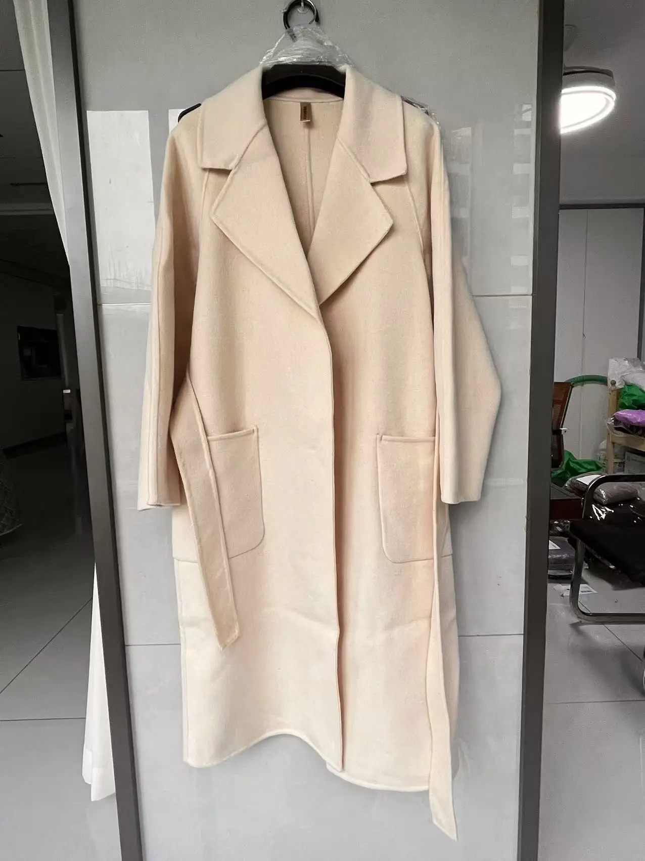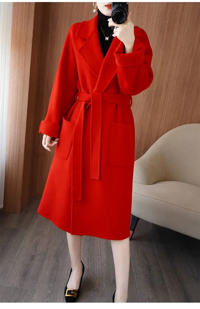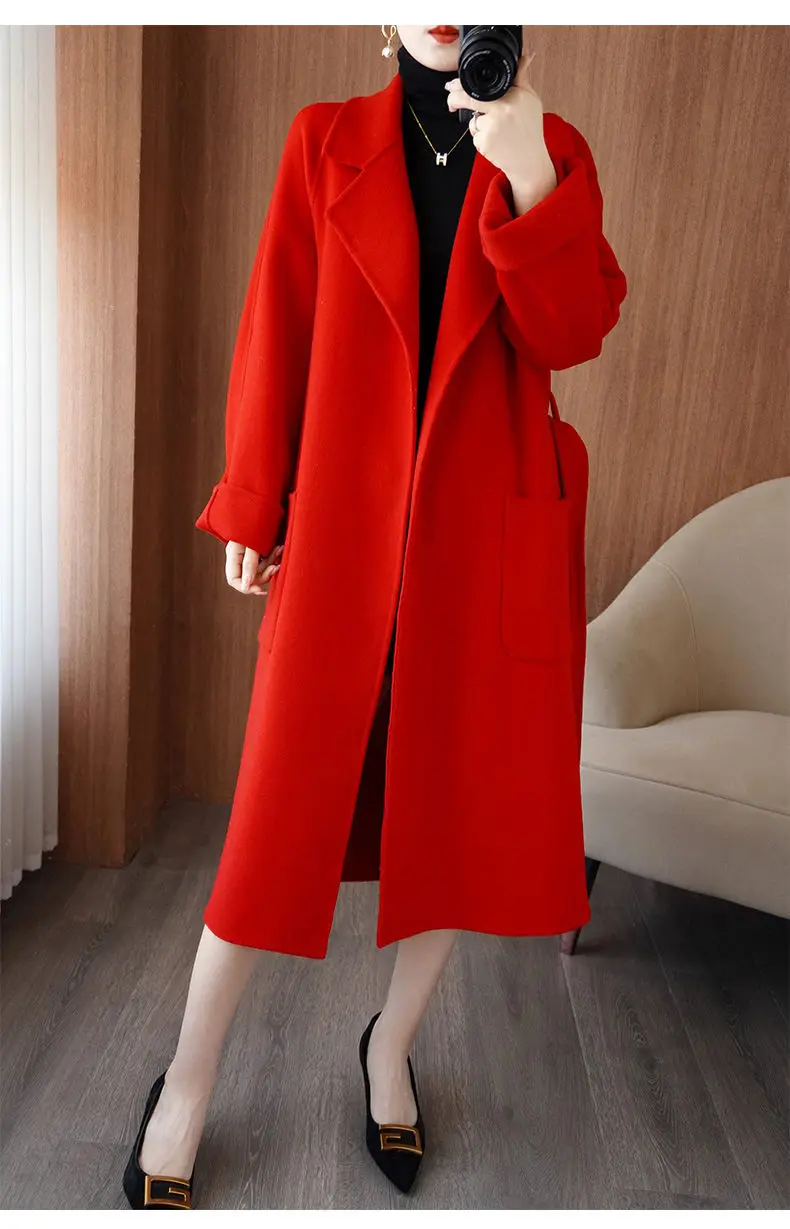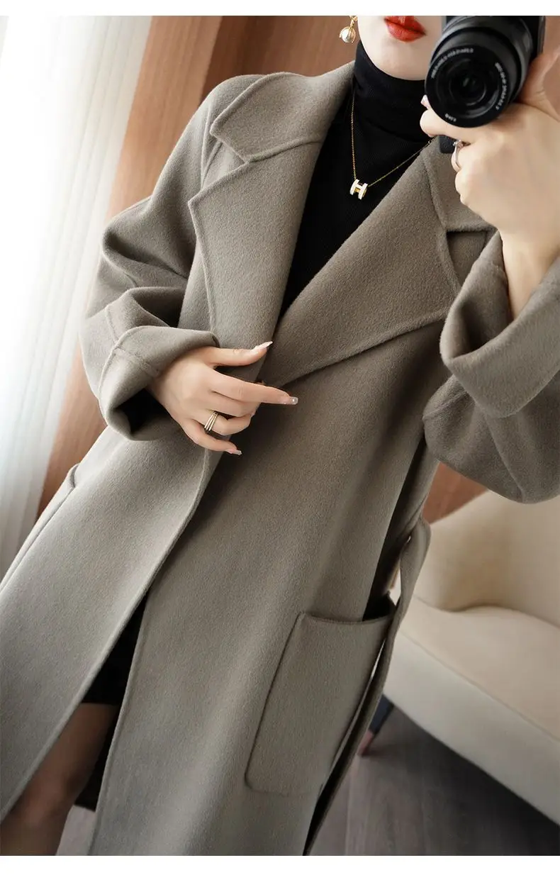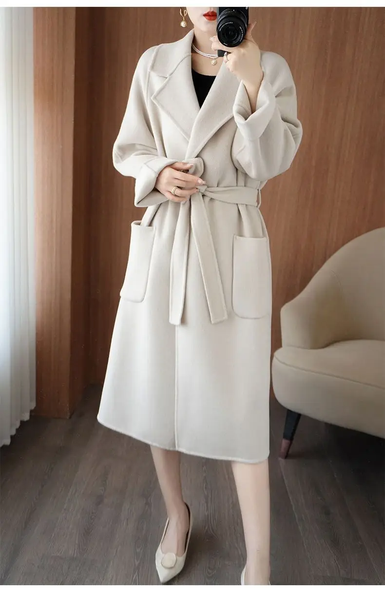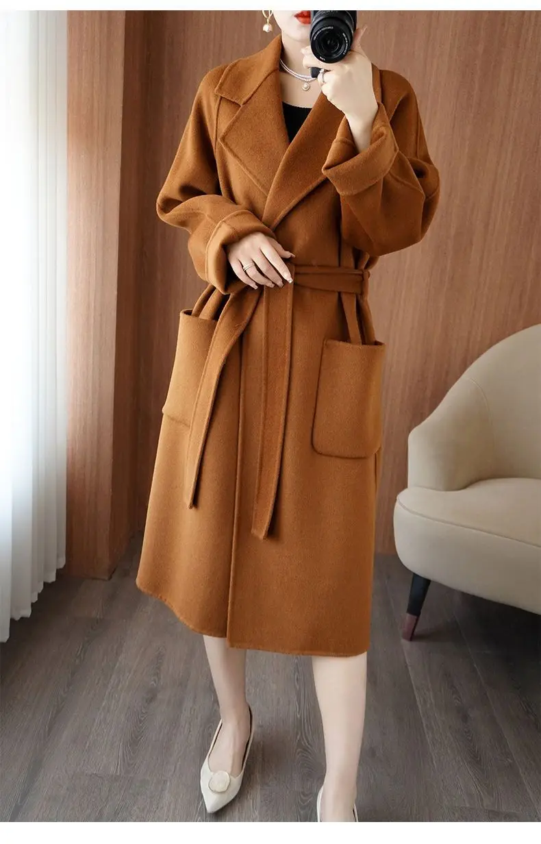 2024 Women's Wear 100% Wool Coat Autumn/Winter Fashion Temperament Double sided Cashmere Coats with Belt Elegant Long Overcoat