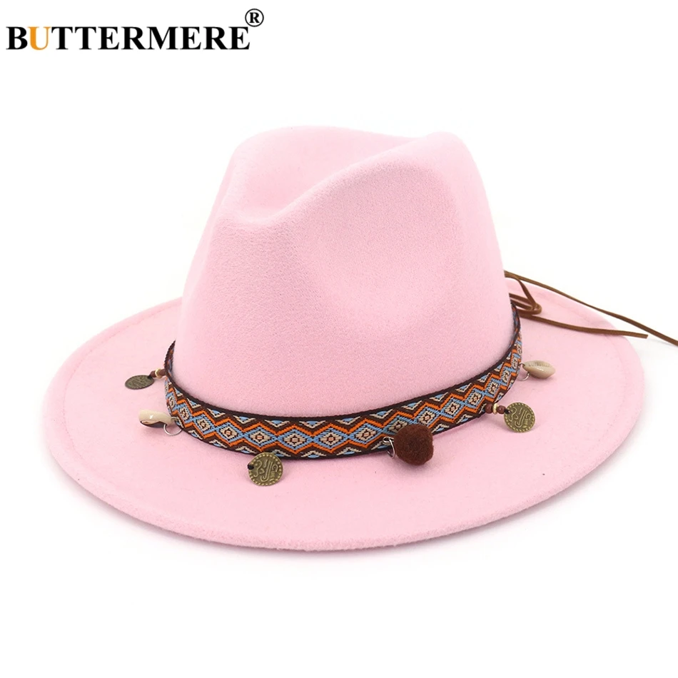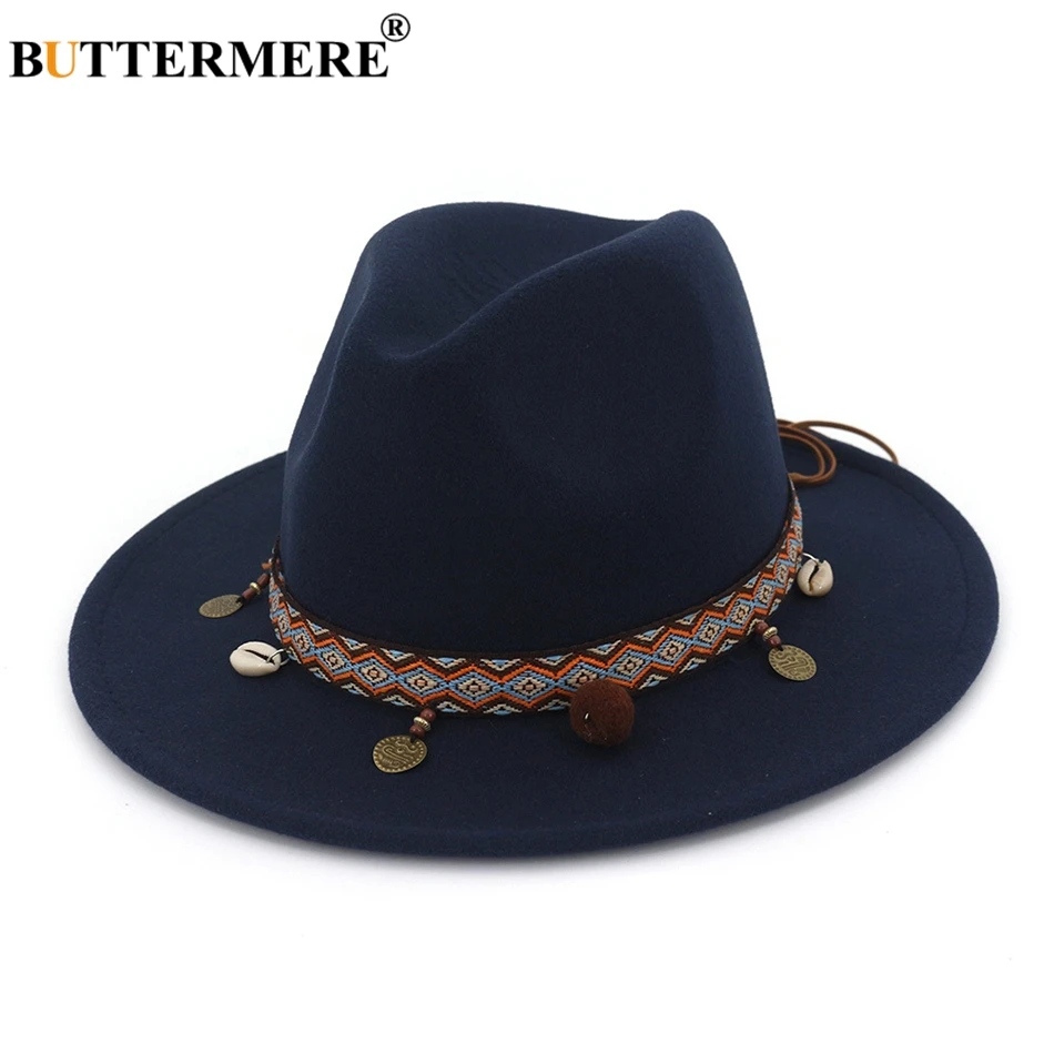 Product Name: BUTTERMERE Red Fedoras Hats For Women Ethnic Style Wool Felt Hat Female Wide Brim Casual Ladies Autumn Holiday Jazz Caps Fashion