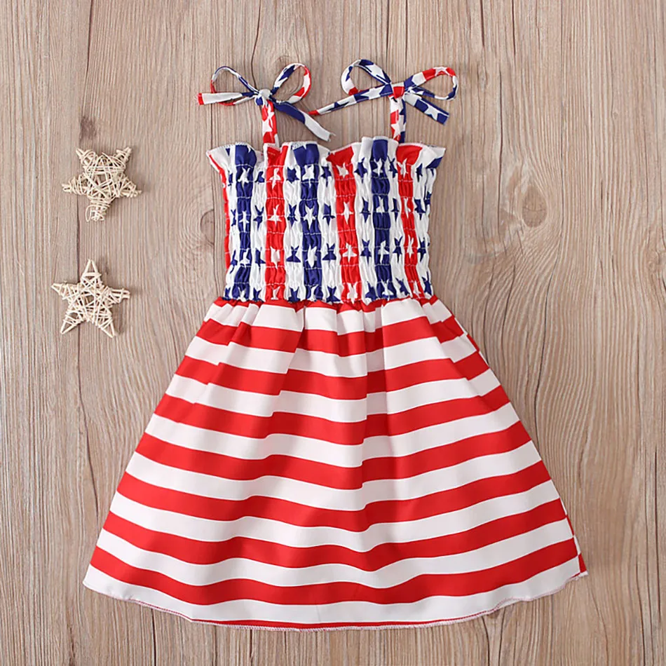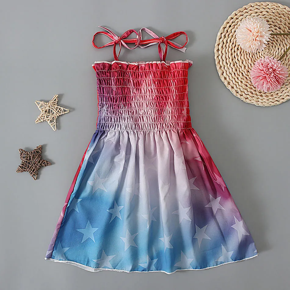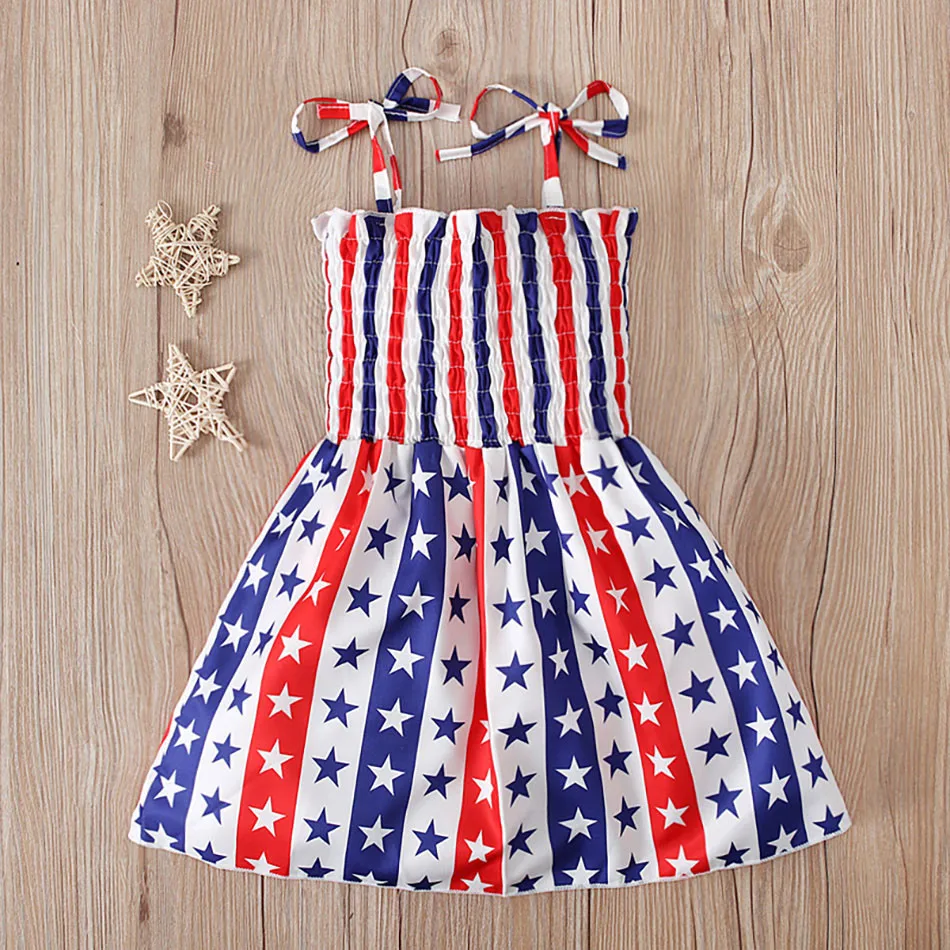 Name:Charming 4th of July Summertime Girls Casual Dresses Sling Patriotic Pattern and Cartoon Printed Playful Butterflies and Stars