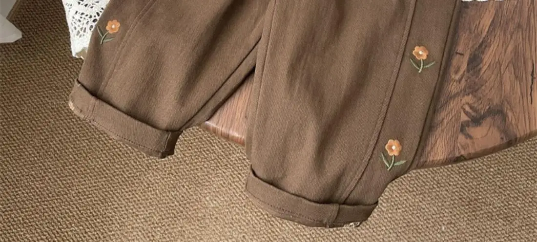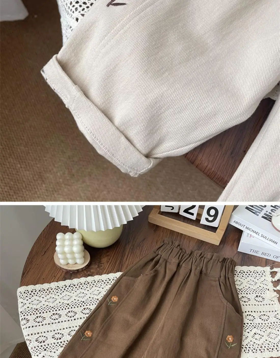 Children Pants 2025 Spring And Autumn Girls' Casual Pants Flower Embroidery Fashion Trousers 1-7year Kid's Pants