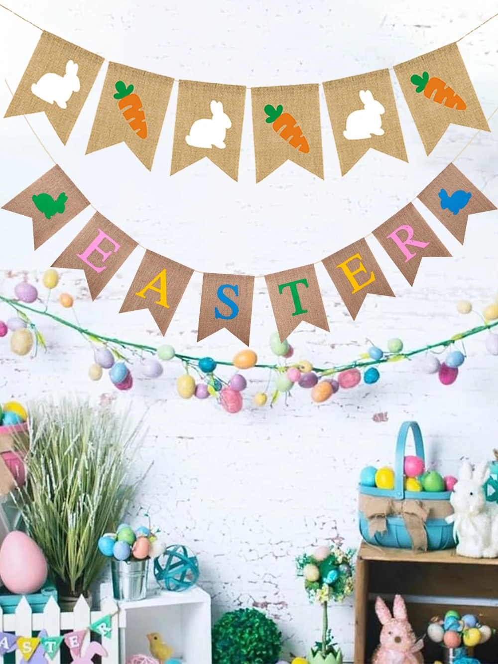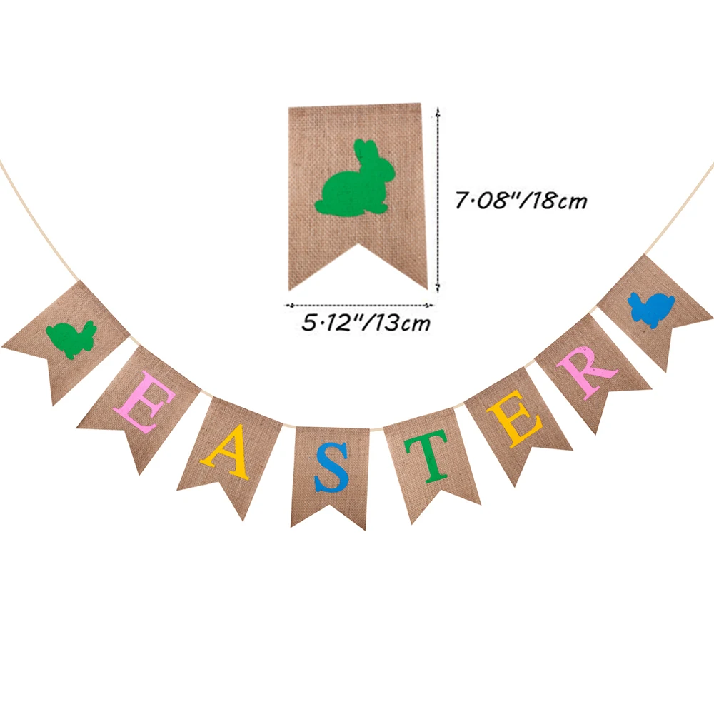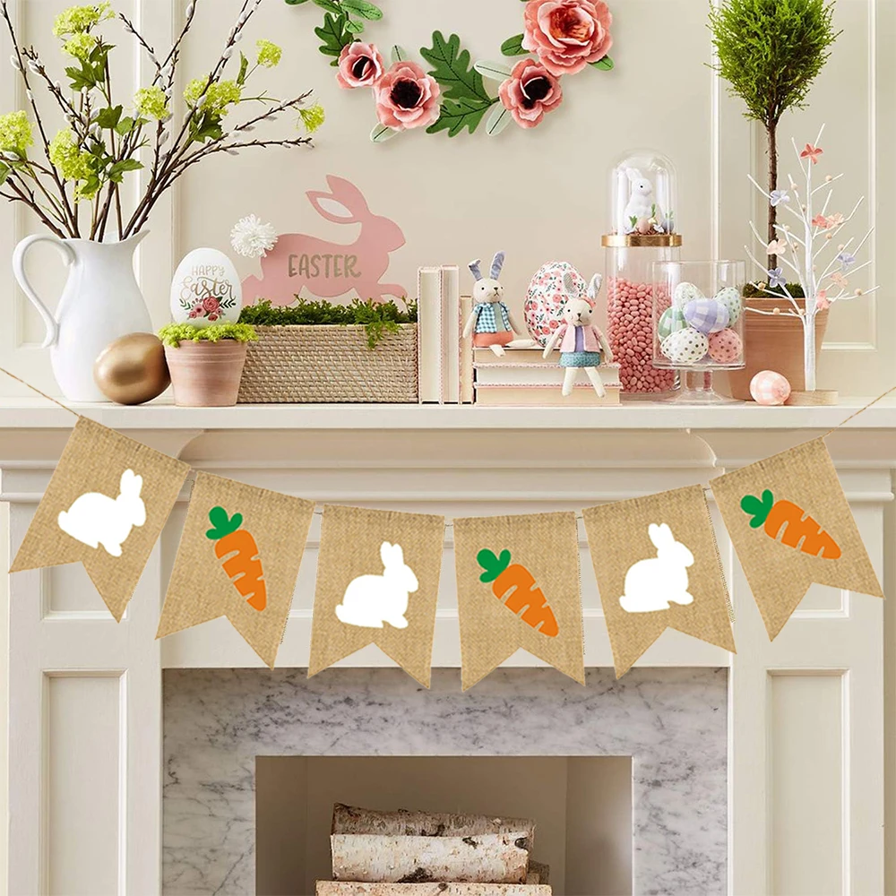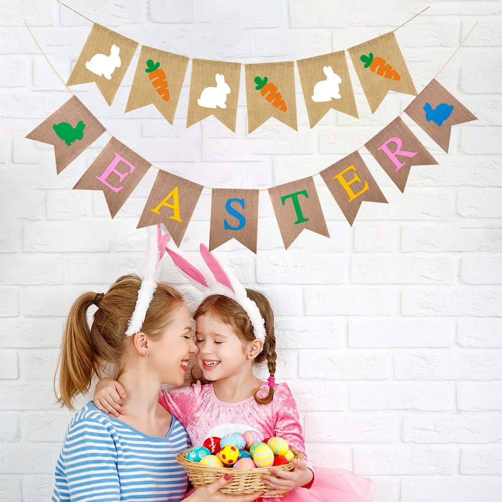 Easter Decoration Burlap Banner Cute Rabbit Carrot Hanging Garland for Easter Party Holiday Home Decoration Wall Decors Supplies