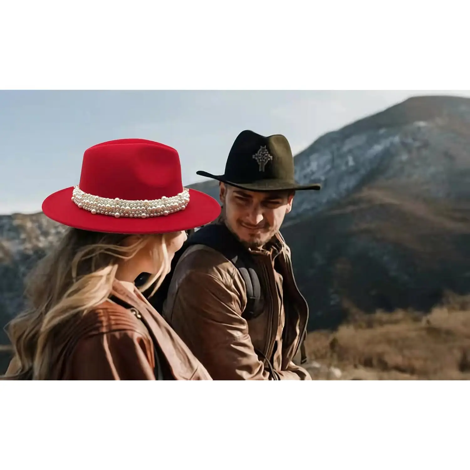 UNIQUE DESIGN: Adored with flat and wide brim, pearls band, various colors.The panama hat is unique, timeless, classic and cowboy style, will make you so fashion, elegant and charming!
