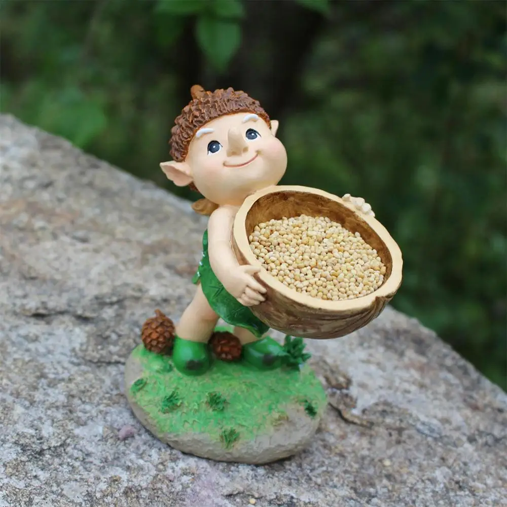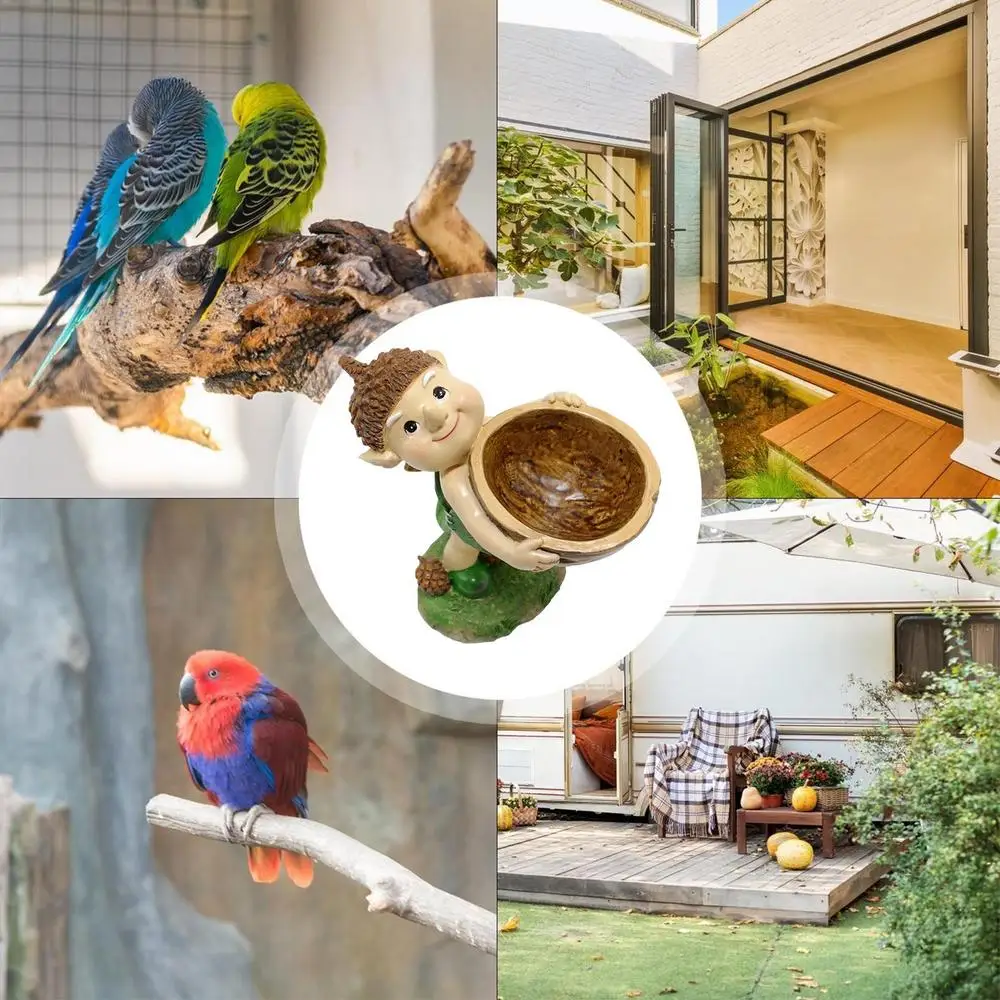Garden Statues For Outside Resin Figurines Bird Feeder Statue Garden Decor Cartoon Sculpture Cute Lawn Ornaments Feeding Station