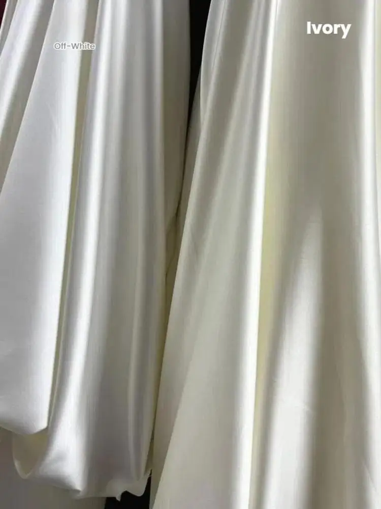 High end elastic silk fabric, beige ivory white soft satin fabric, designer wedding dress, shiny satin