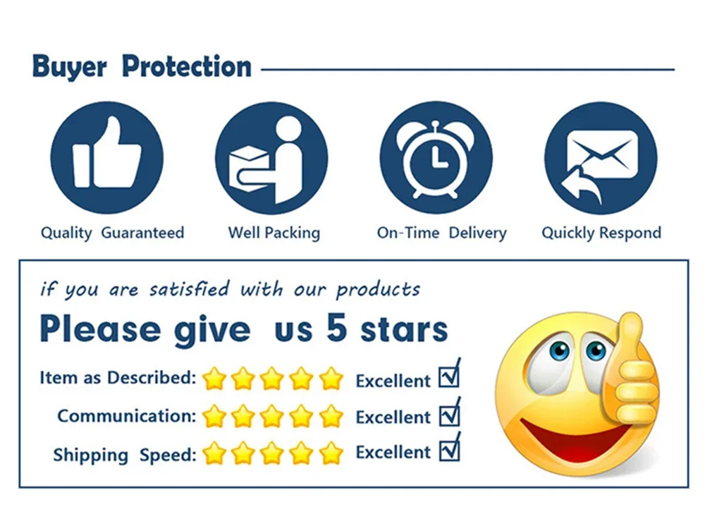 Before placing your order, after paying or receiving the package, if you have any problems with our items or services, please feel free to contact us. We will do our best to solve your problems and provide you with the best customer service. Thank you.