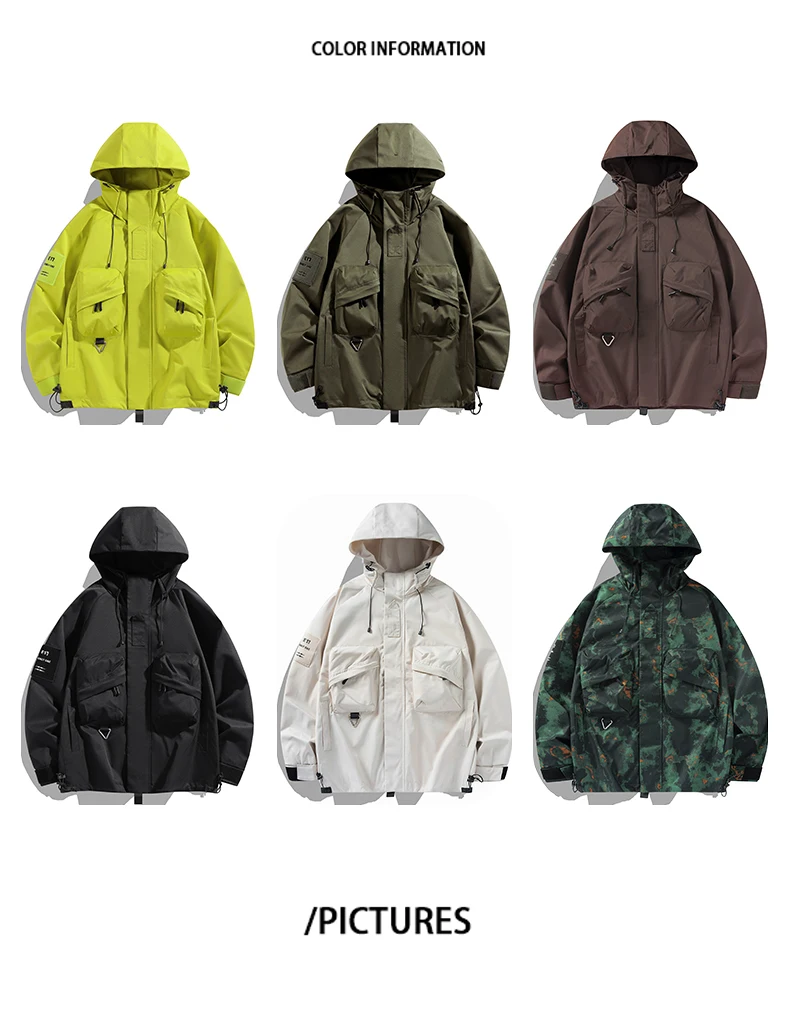 Men Jackets Fashion Unisex Outdoor Cargo Jackets High Street Hooded Coats Hip Hop Outwear Youth Clothing Top Man Women Hoodies