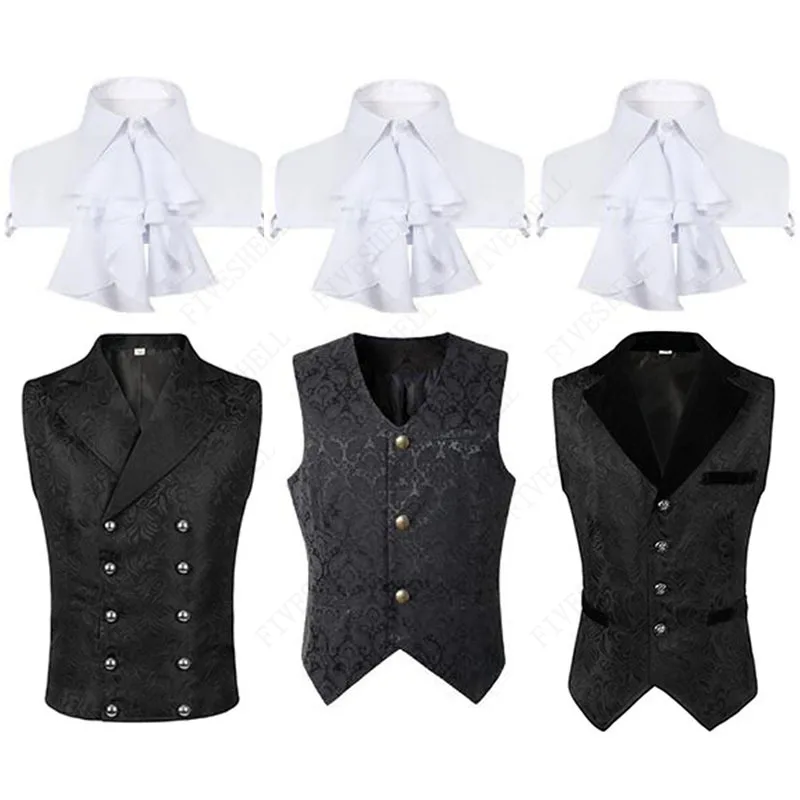 Men Steampunk Renaissance Cosplay Medieval Gothic Waistcoat Vest Vintage Vicotiran Jacquard Swallow Top Noble Fiveshell Costume