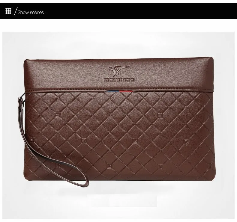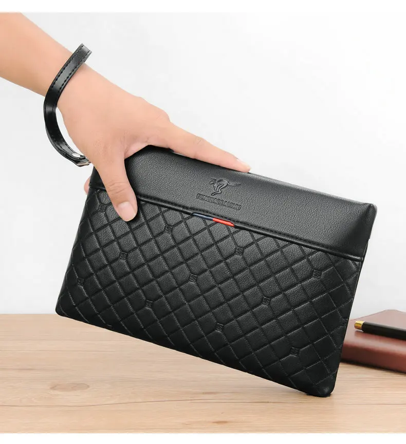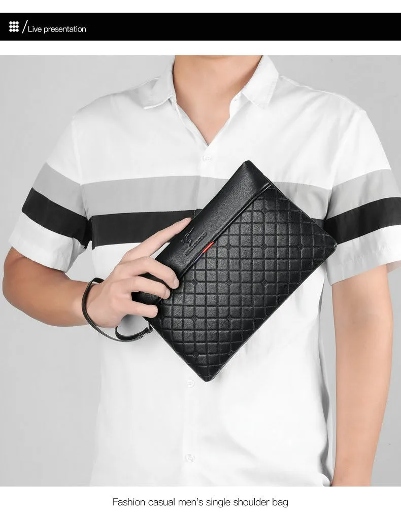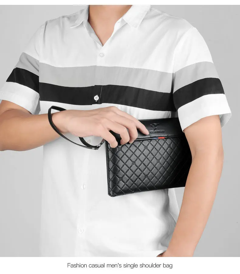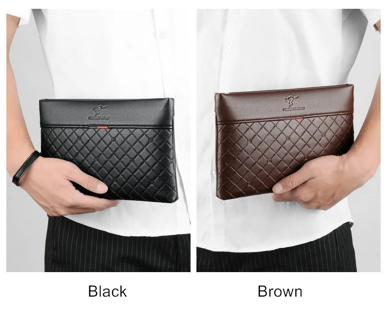 Men's  Clutches Handbag Plaid New Soft Leather Moneybags Casual Envelope Bag Fashion High Capacity Trend Style Business Gift