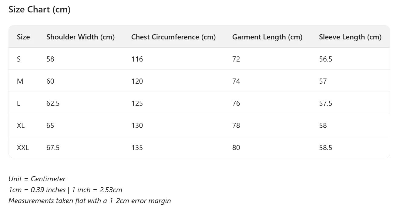 size_info: {"sizeInfoList":[{"length":{"cm":"116","inch":"45.67"},"size":"S","vid":100014064},{"length":{"cm":"120","inch":"47.24"},"size":"M","vid":361386},{"length":{"cm":"125","inch":"49.21"},"size":"L","vid":361385},{"length":{"cm":"130","inch":"51.18"},"size":"XL","vid":100014065},{"length":{"cm":"135","inch":"53.15"},"size":"XXL","vid":4182}]}