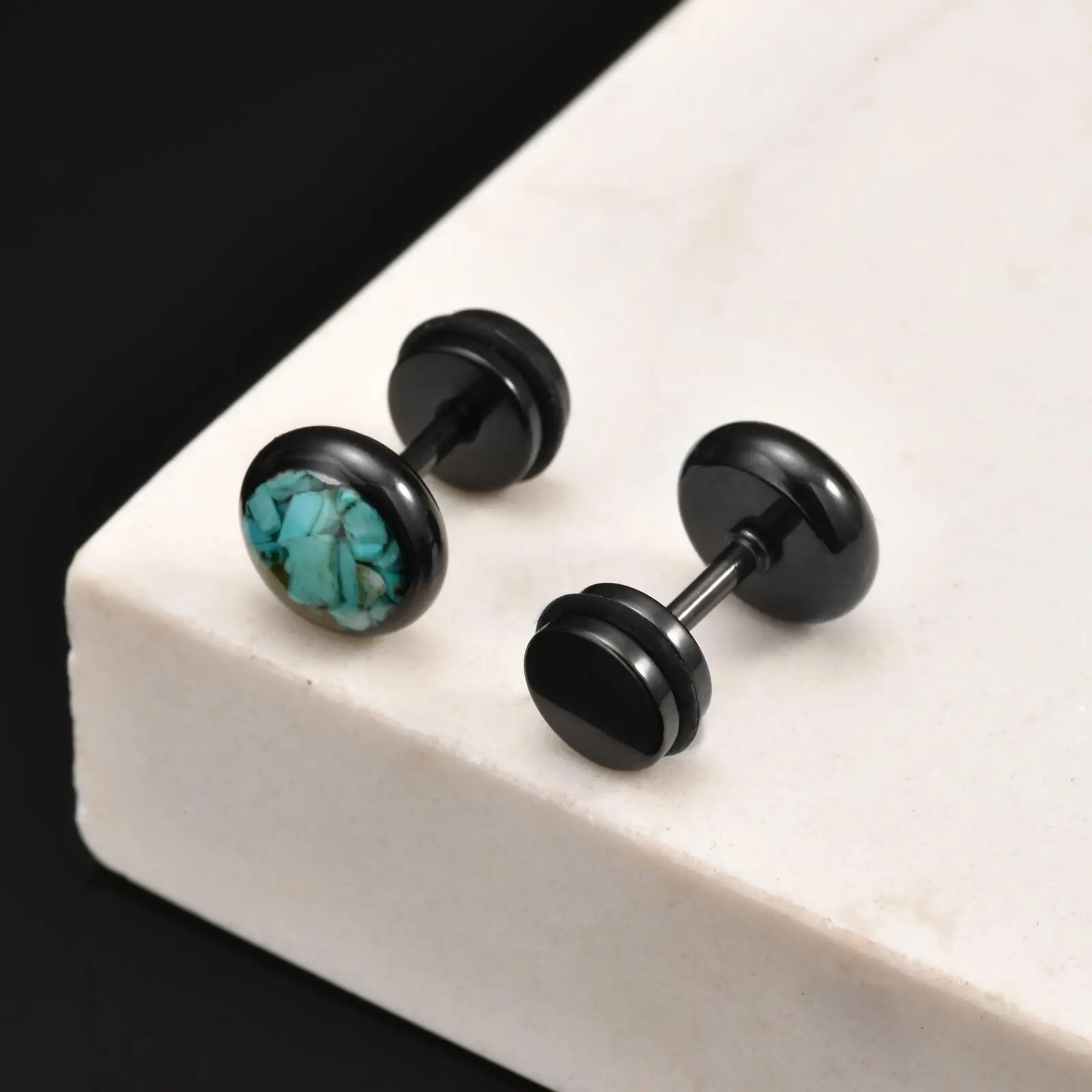 Natural Stone Stud Earrings for Men Boys,Stainless Steel Plated Round Small Earring,Stylish Jewelry Gifts