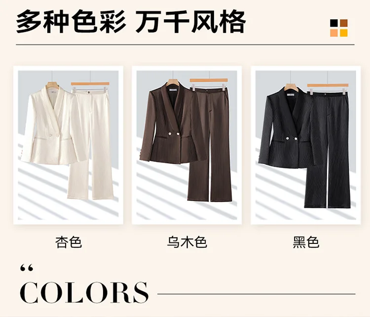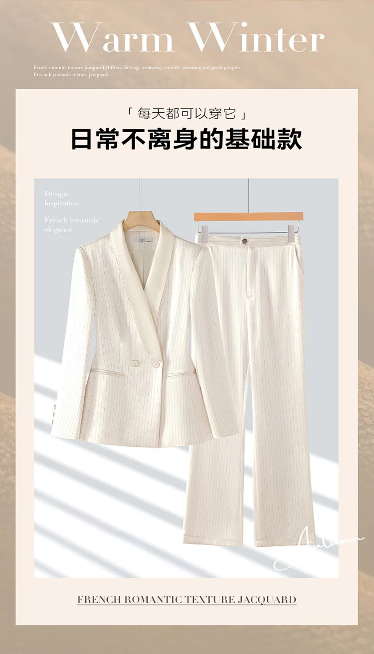 Designed for autumn/winter, this pant suit provides both warmth and elegance for cooler months.