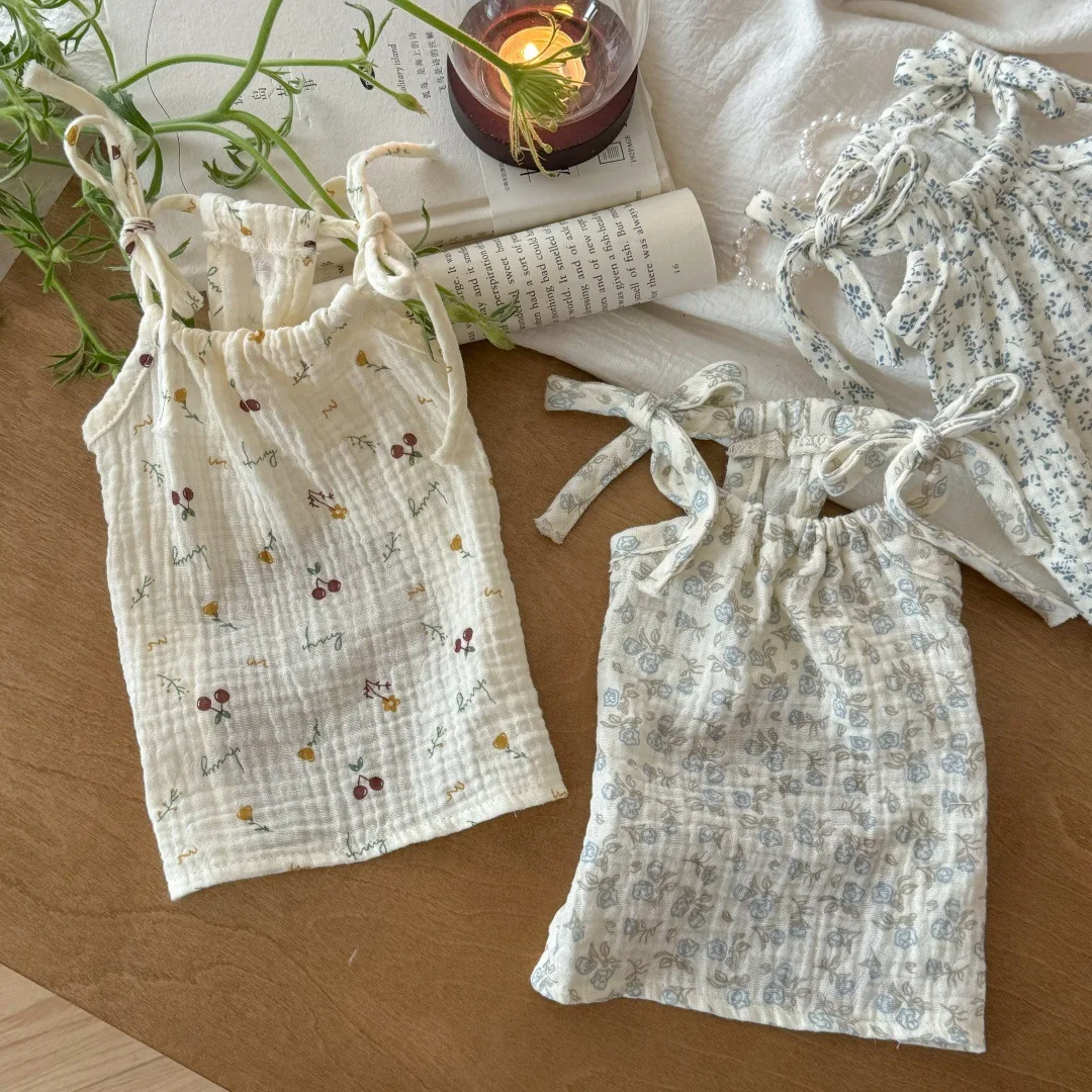 Pet Breathable name-branded clothes Vest Camisole Pajamas Pet Drawstring Dress Small Dog Clothes Cat Spring Puppy Clothes for Small Dogs