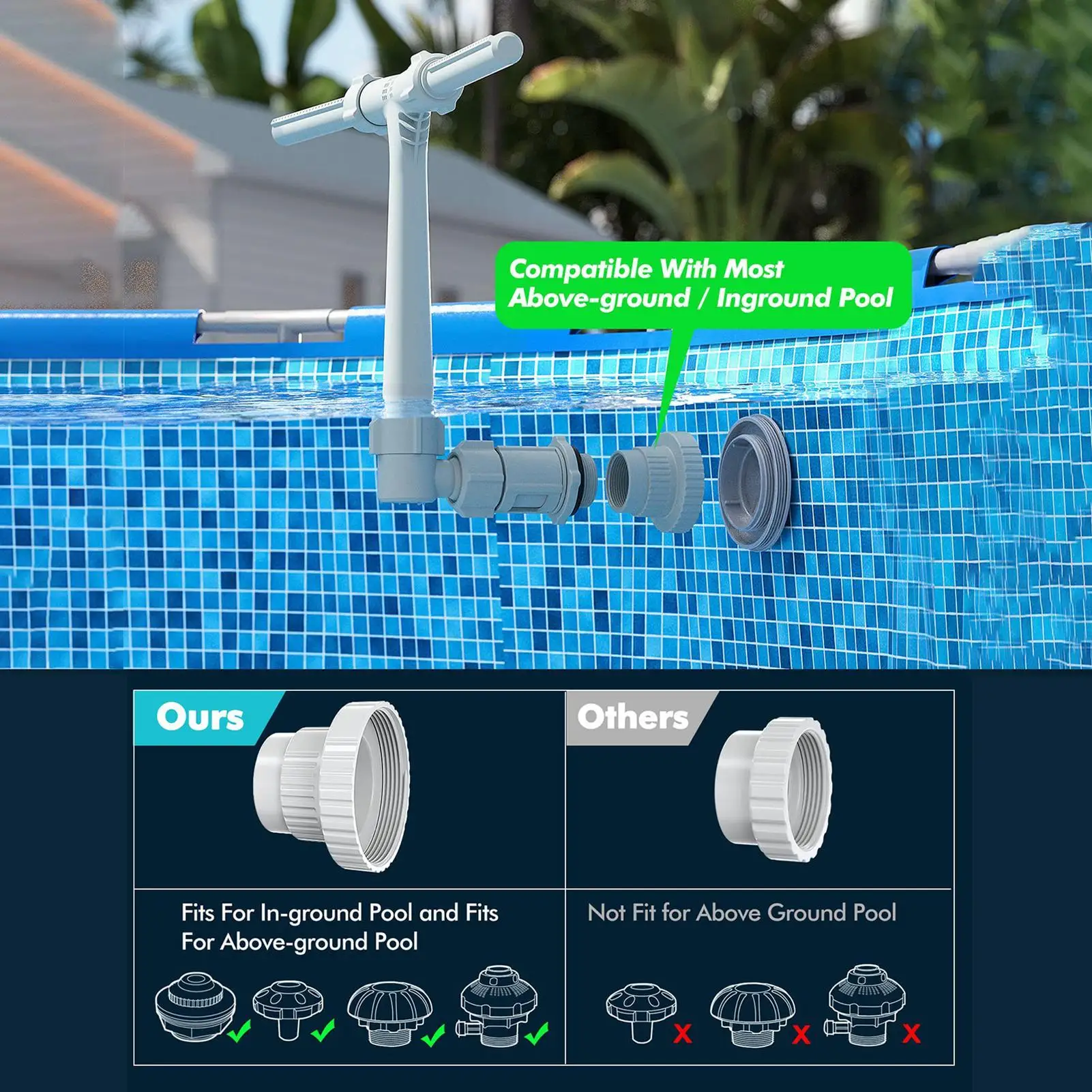 2.Precise Control of Jets: Create the ideal pool experience with our Pool Fountain's precise jets control, adjustable waterfall direction and height. Perfect for any pool size and shape, the 360 adjustable horizontal and vertical tubes and side valve adjustments let you effortlessly lift your water display