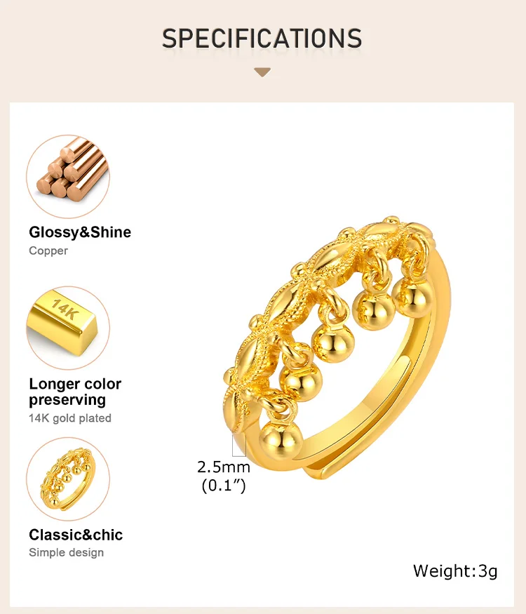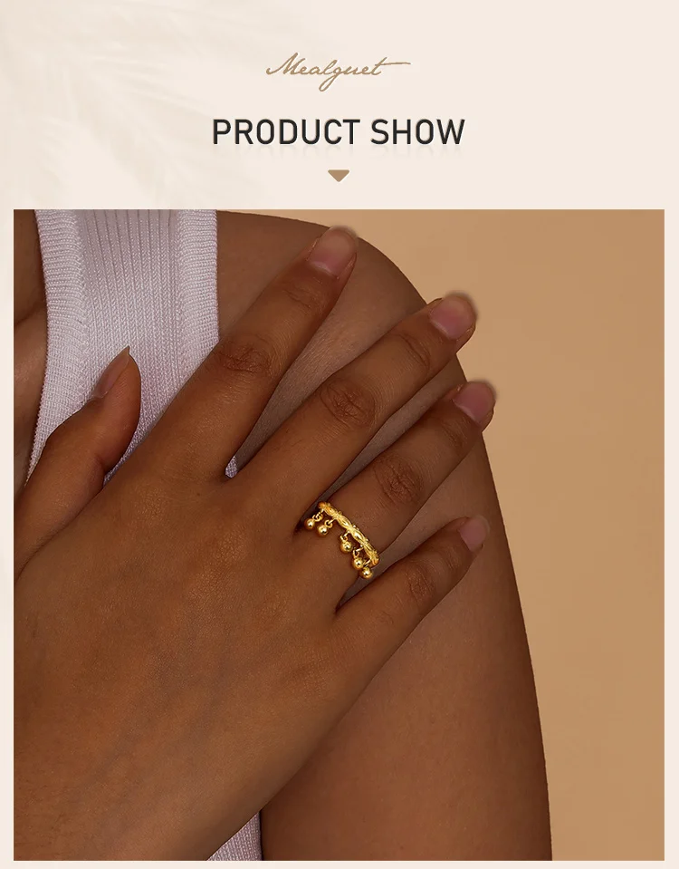 Statement Ring Resize, Adjustable Small Bell Charms Women Openable Jewelry