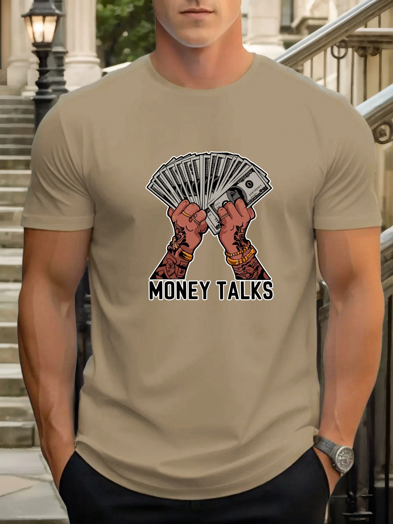 T Shirts For Man MONEY TALKS 100% Cotton Graphic Printing Summer Round Neck T-Shirt Casual Breathable Street Style Daily Top