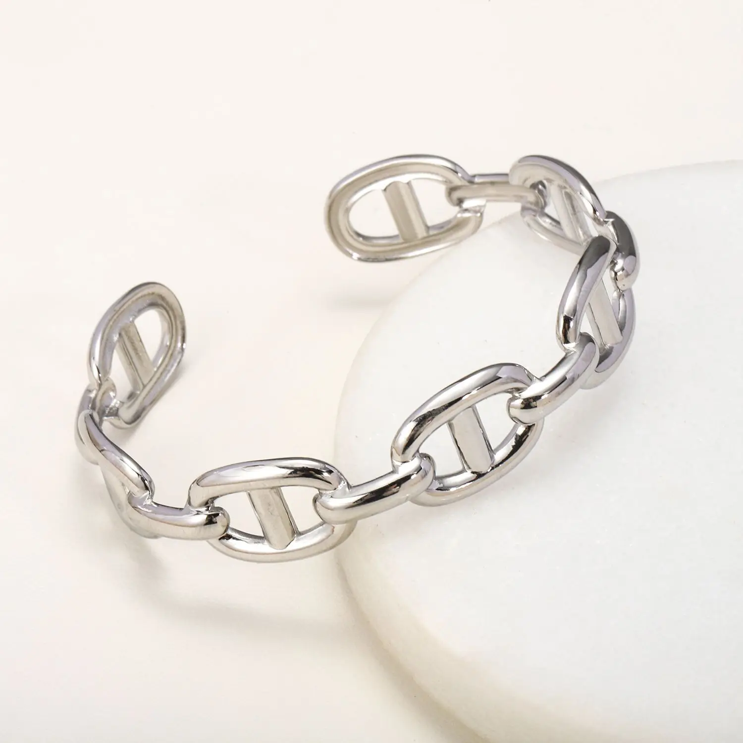 Titanium - Steel Gold - Plated C - Shaped Open - Ended Bangle. A Unique, Irregularly Spliced And Niche Accessory For Women.