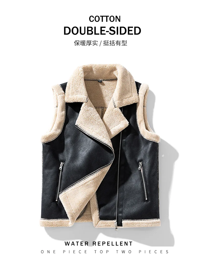Warm Vest Male Jacket Can Be Worn On Both Sides Sleeveless Waistcoat Men Fashion Casual Thicken Gilets Winter New Lamb Wool Coat