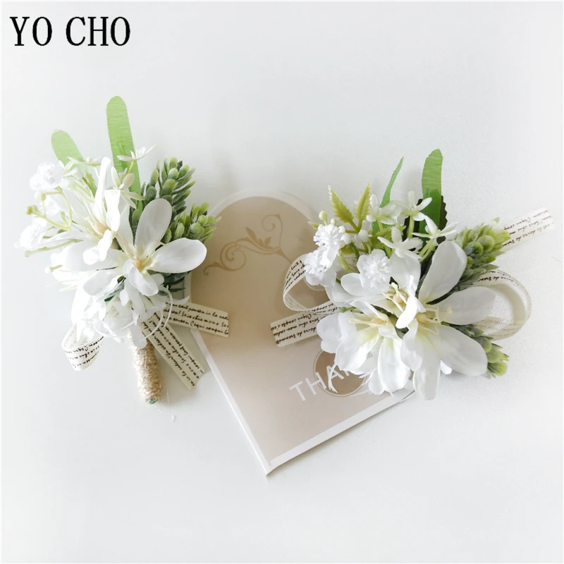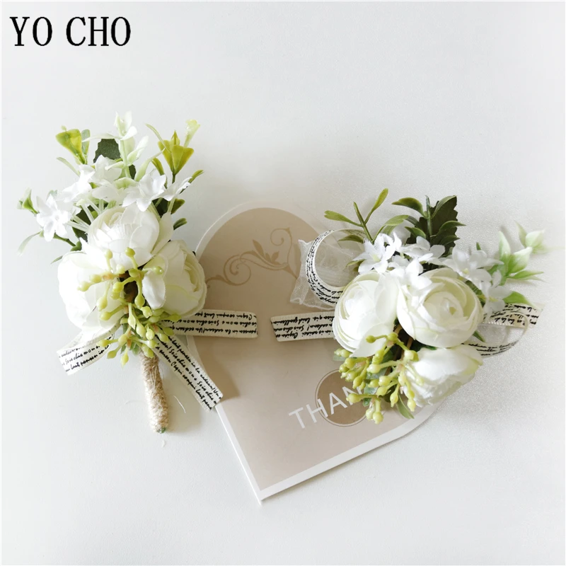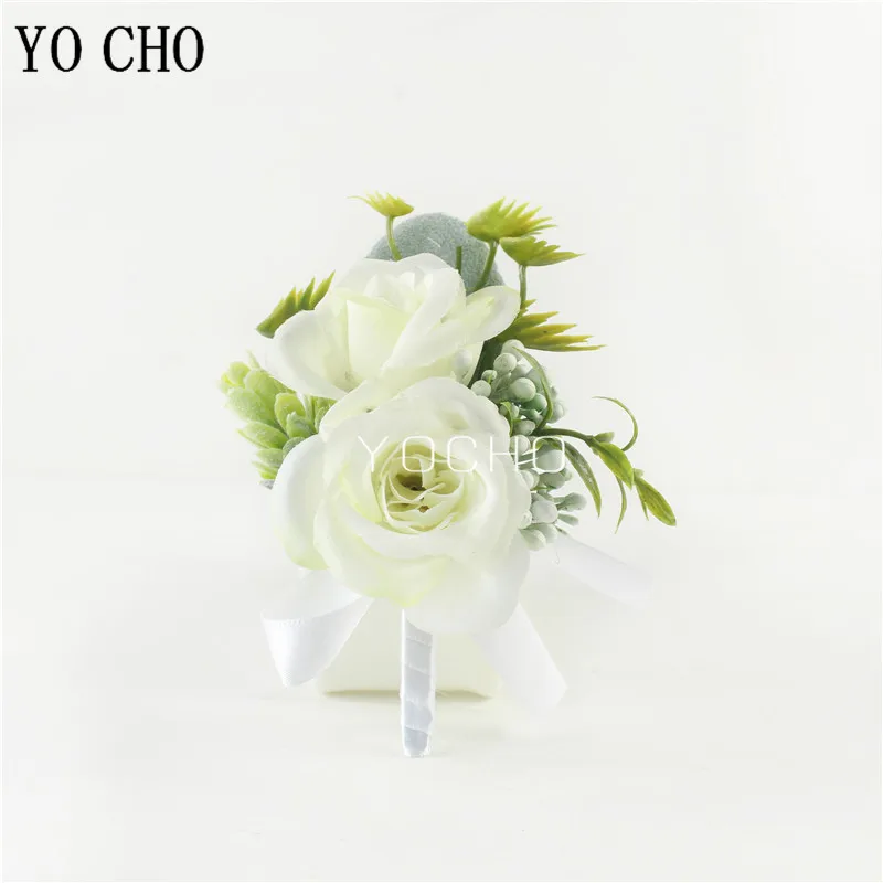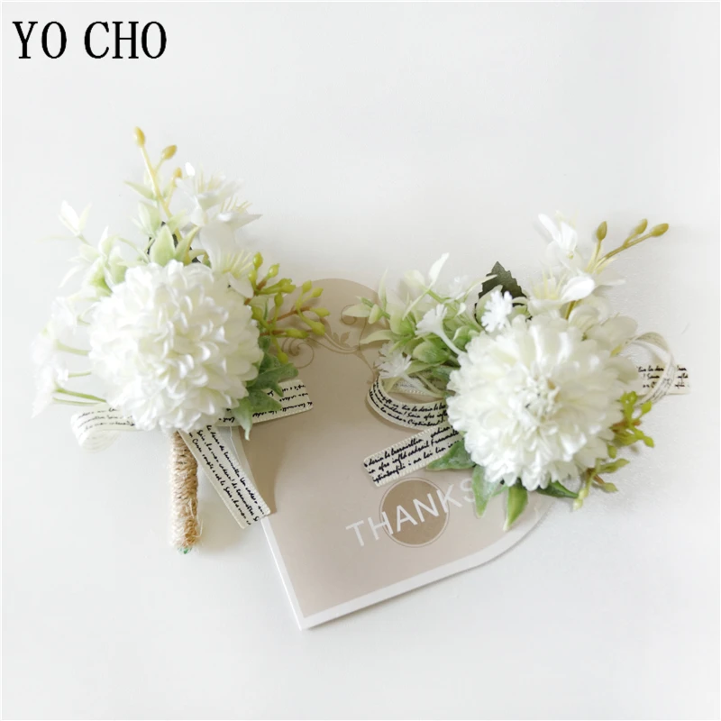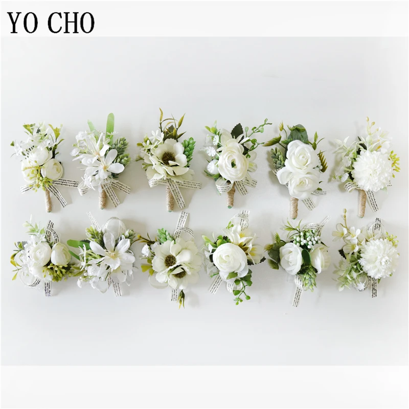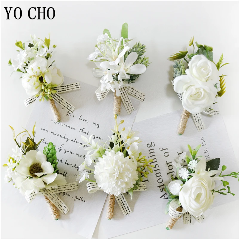 YO CHO White Brooches Man Suit Shirt Collar Lapel Pin Brooch Pins Wedding Party Accessories Bridesmaid Bracelet Flowers Corsages Flower