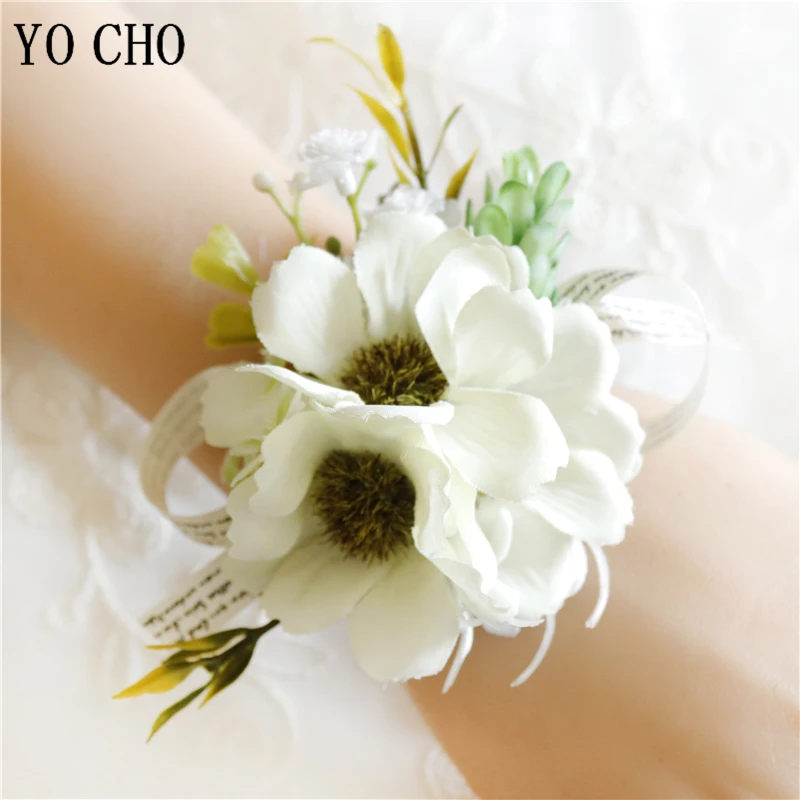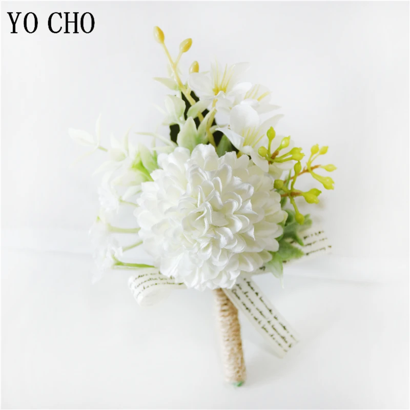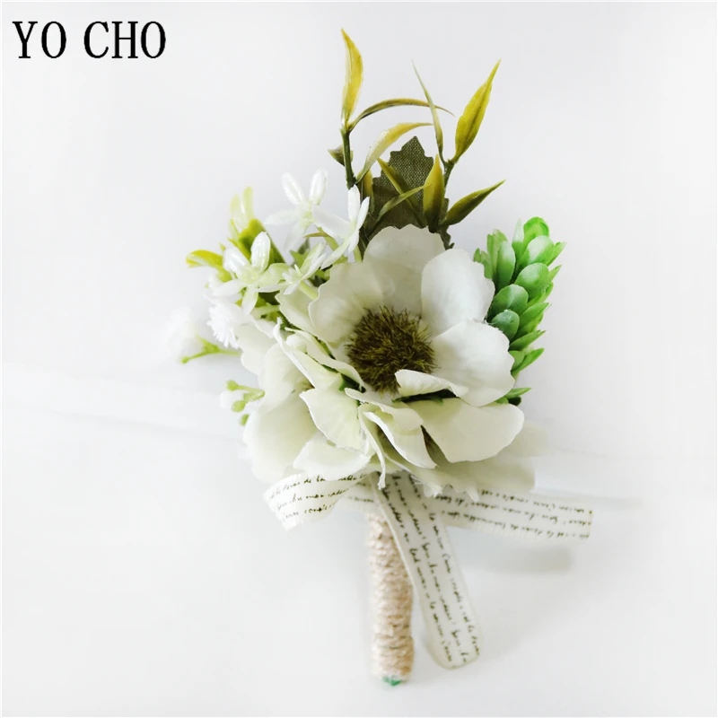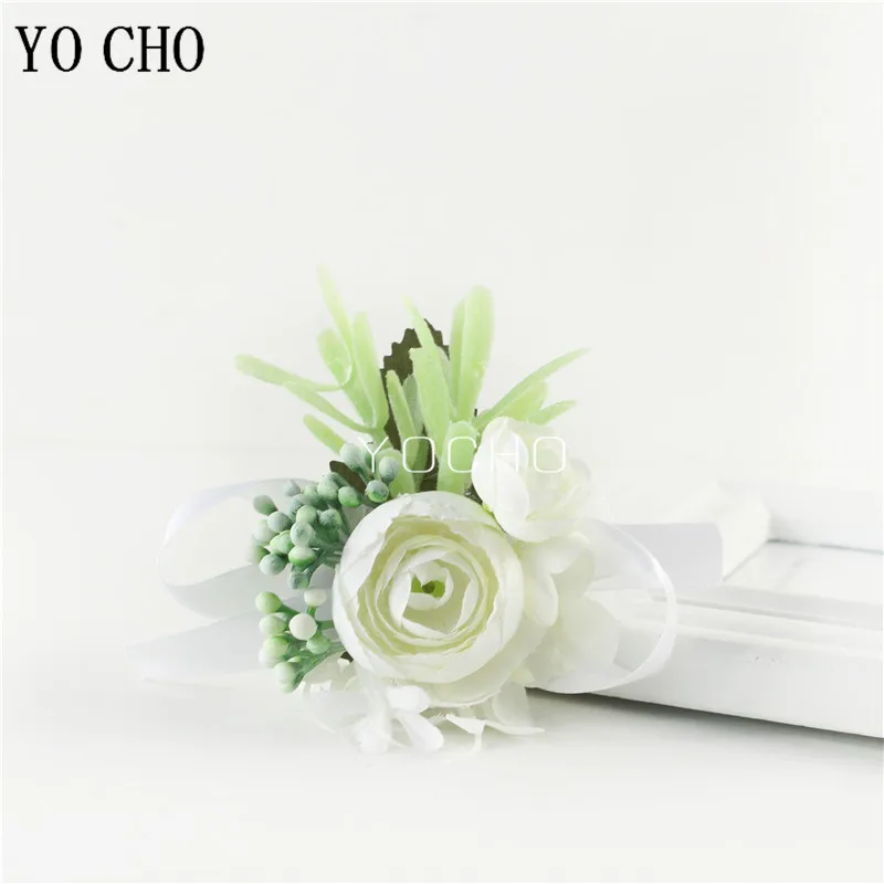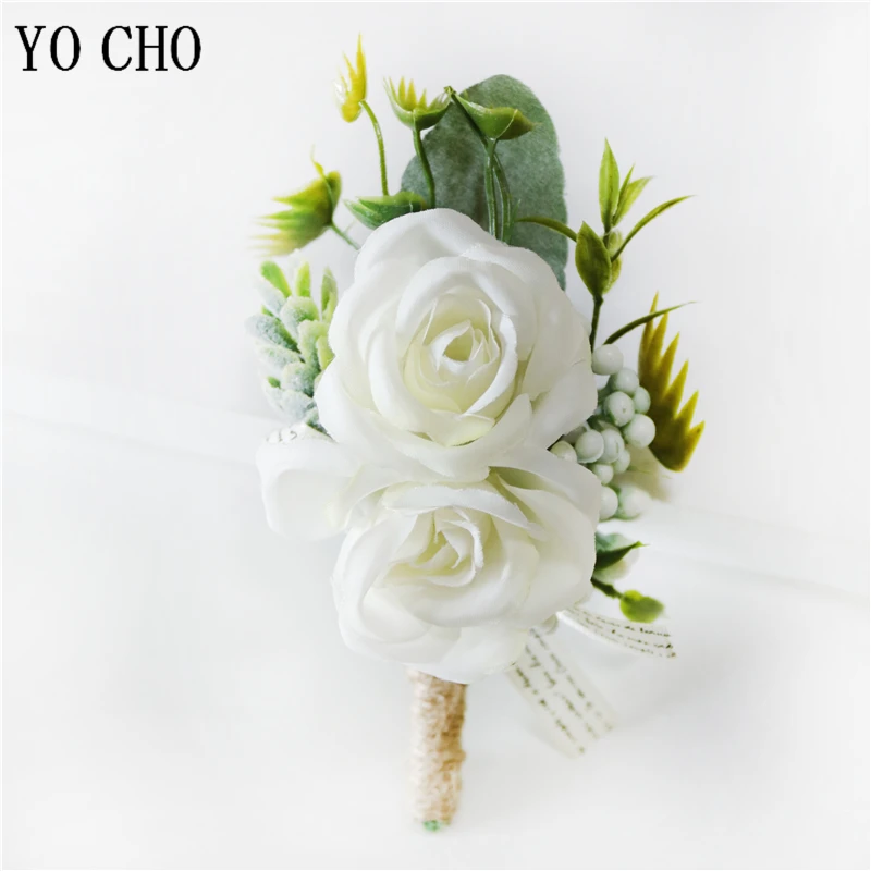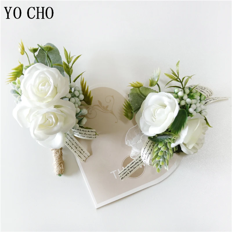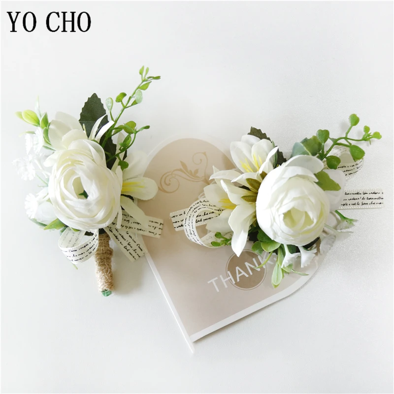 YO CHO White Brooches Man Suit Shirt Collar Lapel Pin Brooch Pins Wedding Party Accessories Bridesmaid Bracelet Flowers Corsages Flower