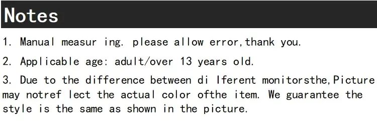 3. Due to the difference between dilferent monitorsthe,Picture may notreflect the actual color ofthe item.We guarantee the style is the same as shown in the picture.