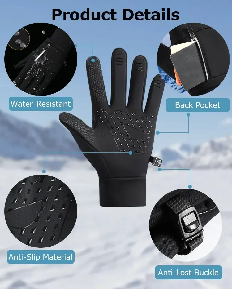 2.Outdoor Sport Gloves For Men& Women-- This Winter Glove Sleek Design, Not too Bulk In Your Hand, Snug fit with Good Shape, Be Easy To Grip Things, Enjoy Warm Sport. Coming With Silicone Particles On The Palm, Thumb, foreFinger, Which Effectively Increases The Grip Strength And Abrasion Resistance Of This Anti-Slip Gloves.