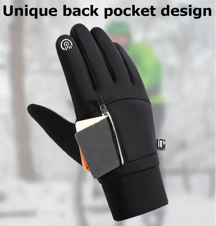 1.Unique Design Winter Gloves-- Come with Back Pocket Design and Anti-Lost Buckle For Small Items Like Coin Key, Lengthened Knitted Cuff, Perfect Fit And Locking Hands Heat. Fit And Sleak Men Winter Gloves Can Snug Fit Your Hand Well And Make It Easy For Running Cycling Driving Outdoor Sport At Cold Weather ConditionV