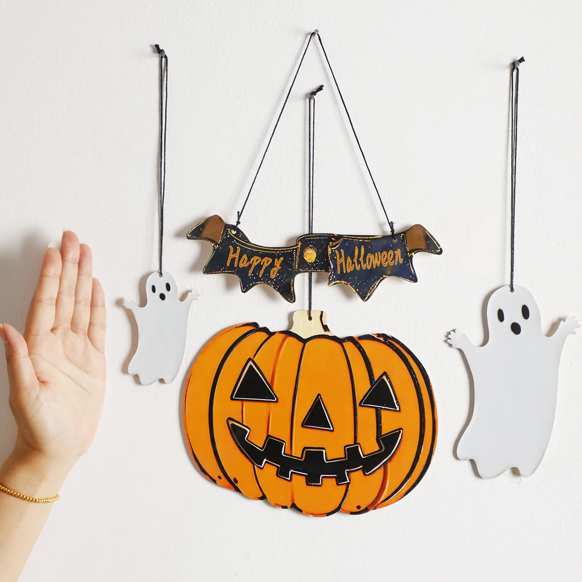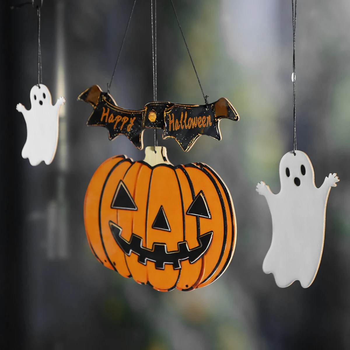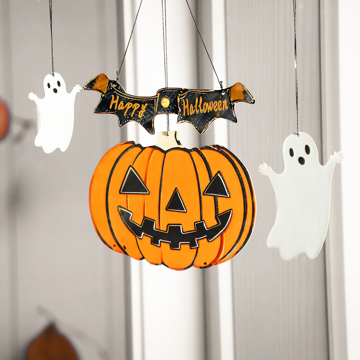 The 'Happy Halloween' banner features a modern style, adding a contemporary touch to your spooky decor.